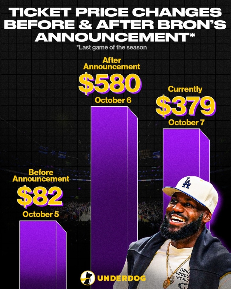 After the content of James’ “Decision 2” was exposed last night, the lowest ticket price has now fallen back to US$379.