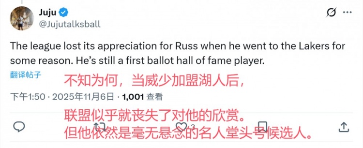 American netizen: Westbrook has been unpopular since he left for the Lakers. No one wants this performance? He is still MVP level