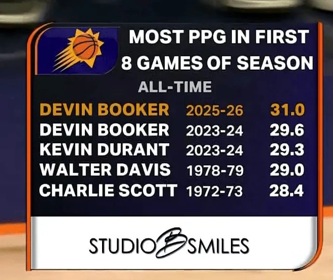 In the first eight games of the season, Booker averaged 31 points per game, which was the highest scoring average in the first eight games of the season in team history.