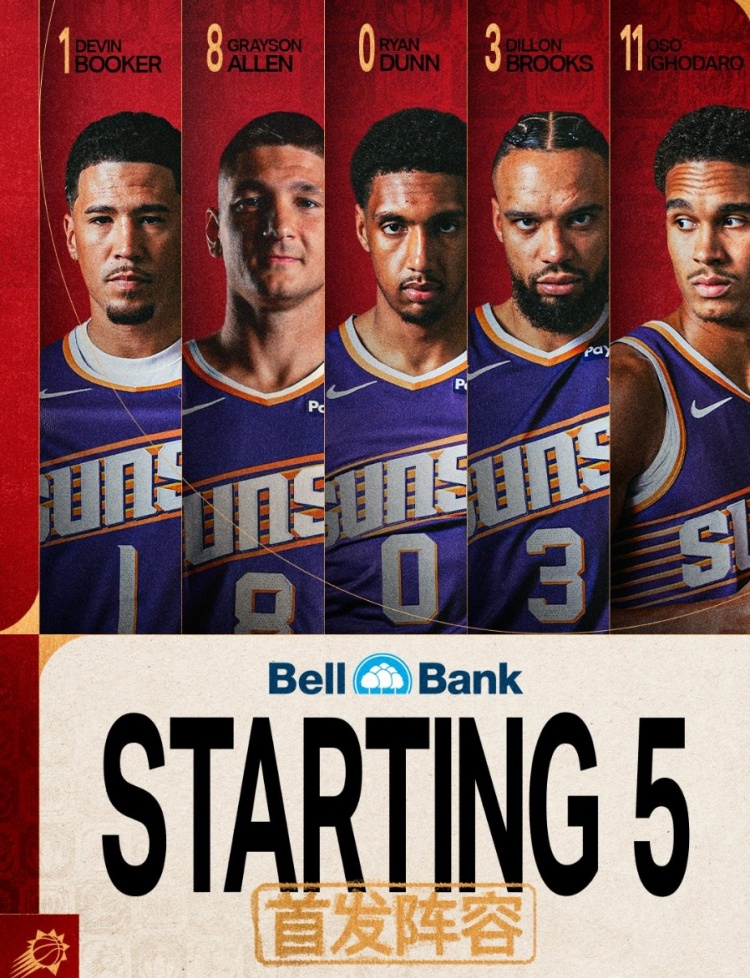 Suns starting lineup: Booker Grayson Allen, Ryan Dunn, Dillon, Iguodaro.