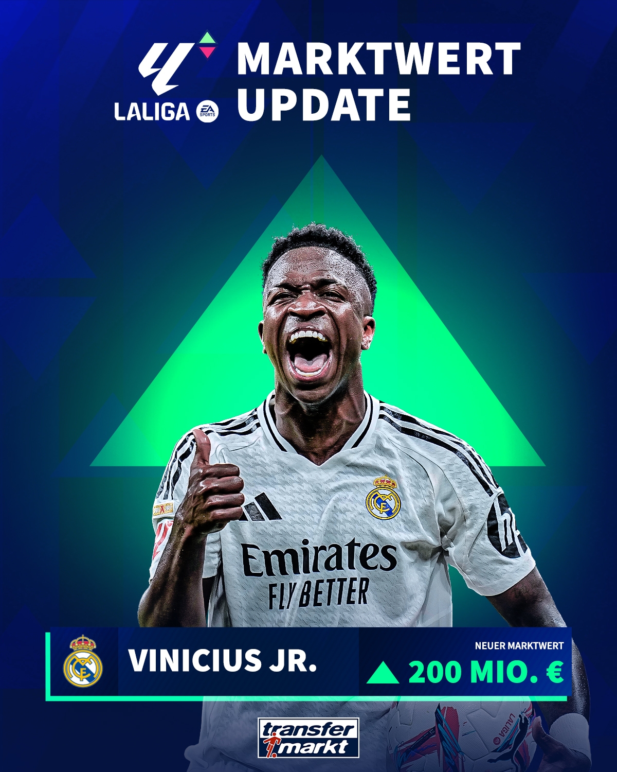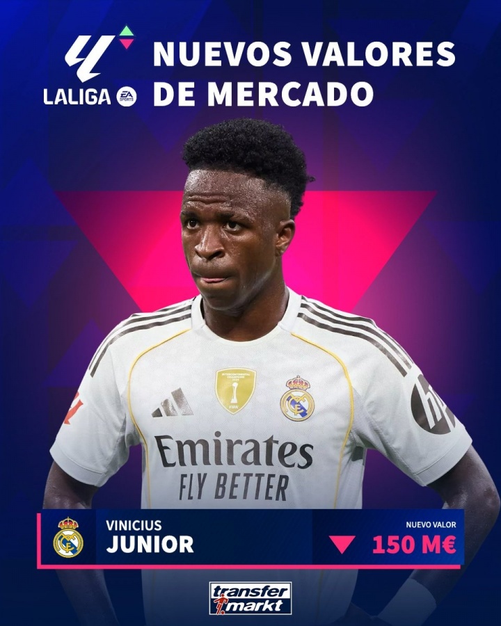 Germany released the latest La Liga value update today. Vinicius became the focus of this update, and his value fell from 170 million euros to 150 million euros.