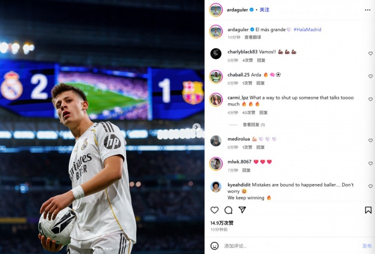 NanSports > Football > A mistake resulted in a goal lost! Guler s social media celebrates the victory: The greatest love, Madrid goes forward!