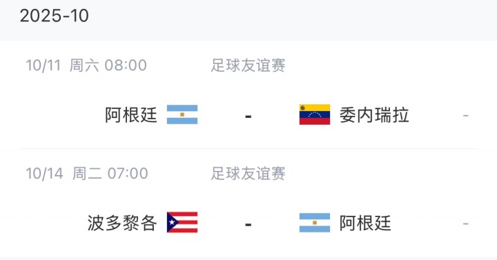 Argentina will play two friendly matches in October, against Venezuela on the 11th and Puerto Rico on the 14th.