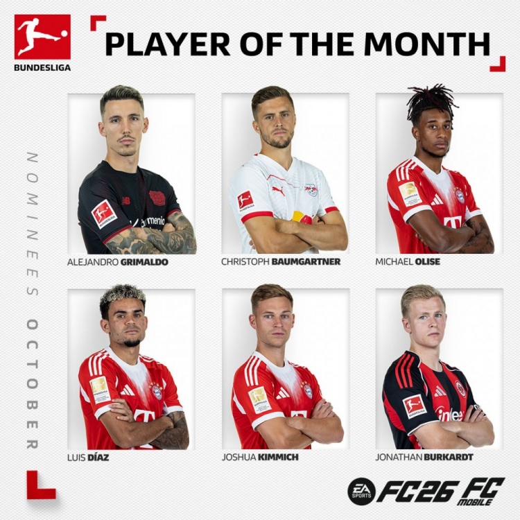 NanSports > Football > Candidates for the Bundesliga Player of the Month in October: Bayern s three players Olise, Dias and Kimmich are on the list