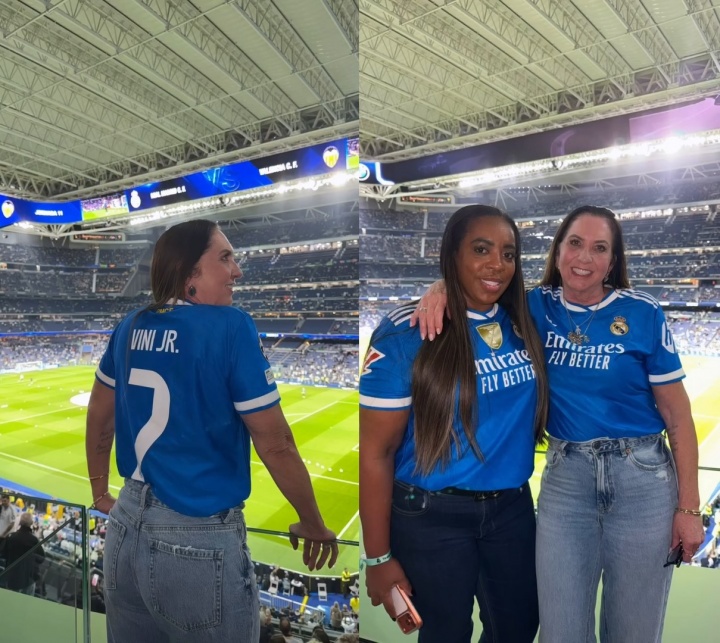 On November 2, Virginia’s mother posted a photo with Vinicius’s mother and posted: “First time watching a football match live, and in such a great way! Real Madrid played against Valencia at the Santiago Bernabeu Stadium. Hala Madrid 🙌👏😍”