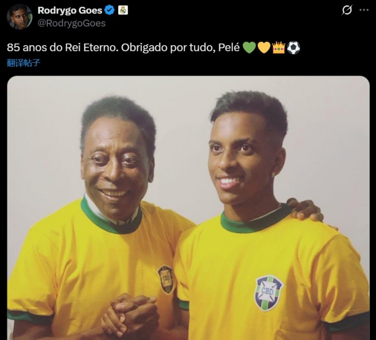 Not long ago, Rodrigo posted a photo of himself and Pele to commemorate each other's 85th birthday.