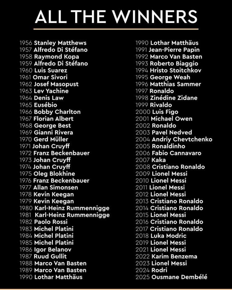 Paris Saint-Germain attacker Dembele won the 2025 Golden Globe Award.