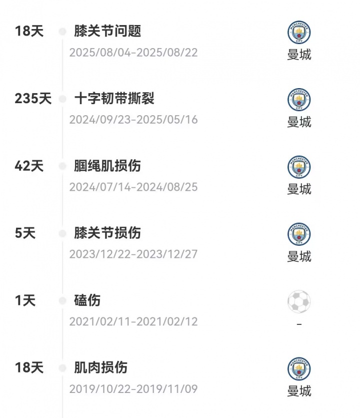 At the beginning of the 2024/25 season, Rodri suffered a serious injury from the anterior cruciate ligament (ACL) of his knee and was sidelined for 235 days. Taking the injury of Mr. Ballon d'Or as a turning point, Manchester City lost the halo of the "six championships in seven years" period and entered the reconstruction period ahead of schedule.